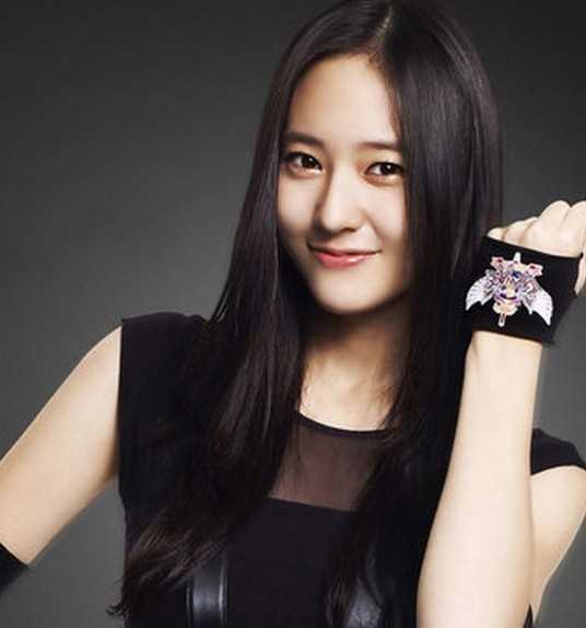 清甜可爱脸蛋的郑秀晶,在一款长直发的点缀下,再结合上气质的中分长刘海,搭配透视连衣裙,瞬间绽放出少许神秘个性感。