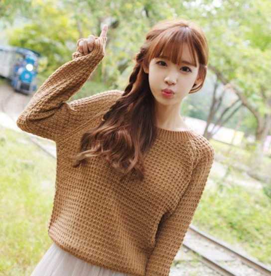 有着几分凌乱的长直发发型,透出了女性的慵懒自然的姿态,打薄修剪的齐刘海设计,再融入低调的棕黄发色,2014清纯气质尽情演绎。