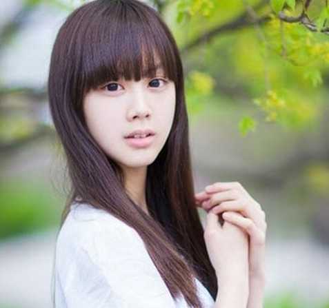 前面剪齐的刘海,甜美清纯,长长的直发搭在肩上,超显甜美,2014年早春流行时尚。