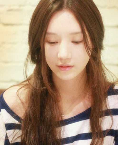 深棕色的微卷长发,来个慵懒式的家居半扎发设计,小女人的温婉气息完美凸显,中分贴服脸颊上的几缕刘海发丝,是那么纯美美感呀!