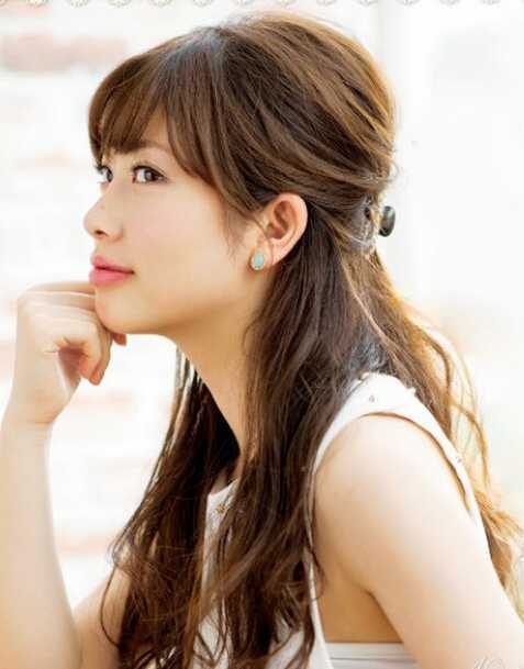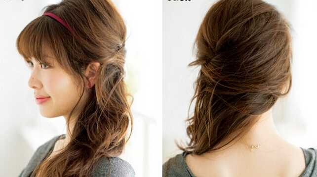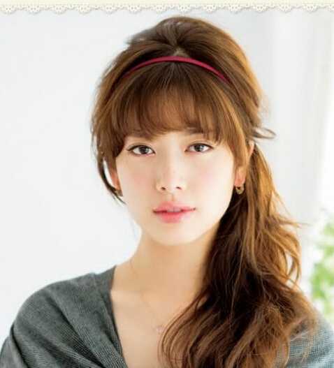 先来看看第一款长发发型扎发,侧扎的头发搭配发箍,给人相当优雅又甜美的感觉。