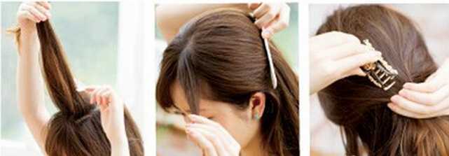 2、再把头发均分两部分,最后把上半区块的头发用发夹固定即可。