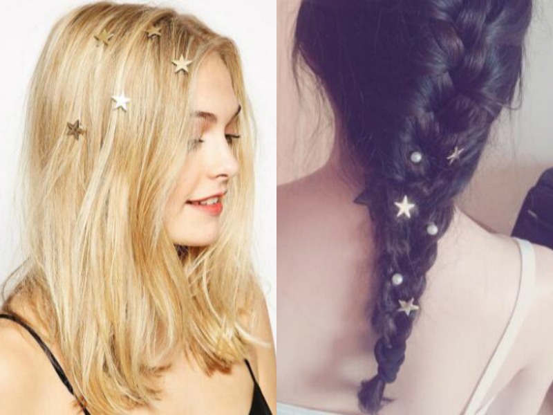 不同的小金色发夹点缀在长发,不管是染金色染发的长发,还是编起了麻花辫的编发,从背面看起来都是唯美和好看的,在寒冷的冬天,要避免掉发型尴尬的状态,不如搭配金色的发夹也是很不错!
