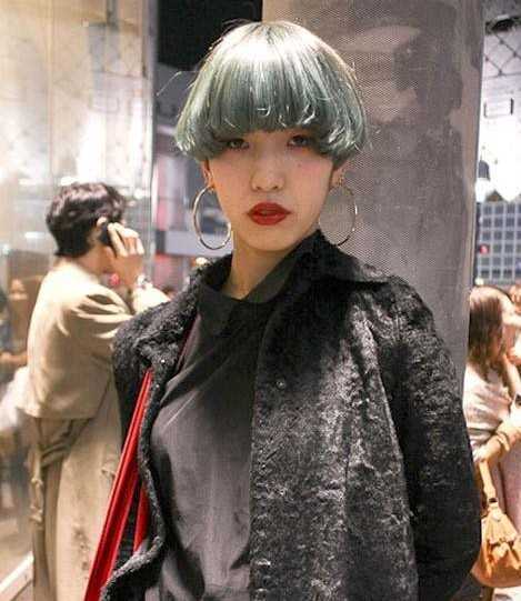 很夸张的一款森女系绿色短发,搭配上复古红唇,国际范儿,有木有?日系发型就是需要这种效果。