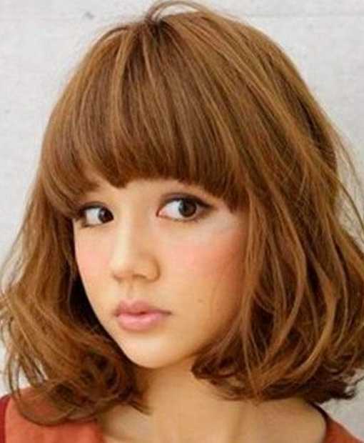 一款日式可爱的短发,内弧的刘海,使眼睛看上去有种水灵灵的感觉哦,两边有点蓬松的卷发,显得特别可爱哦,棕色的头发,特别好看。