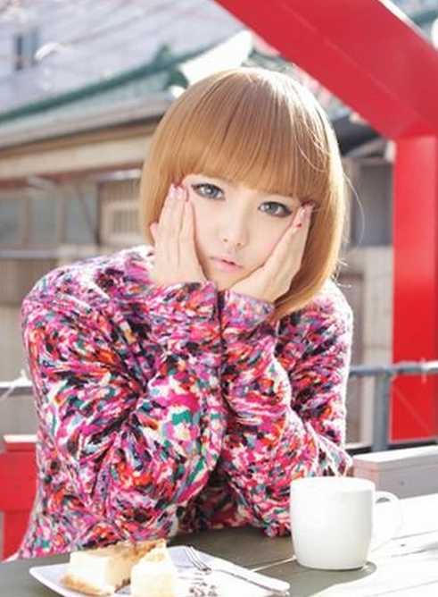 非常可爱的一款校园萝莉头,齐齐的刘海,两颊的向内弯的头发修饰脸型的效果超好哦,这样一张小脸就出来了,很捧,黄色的头发添了时尚感,卖卖萌,好可爱。