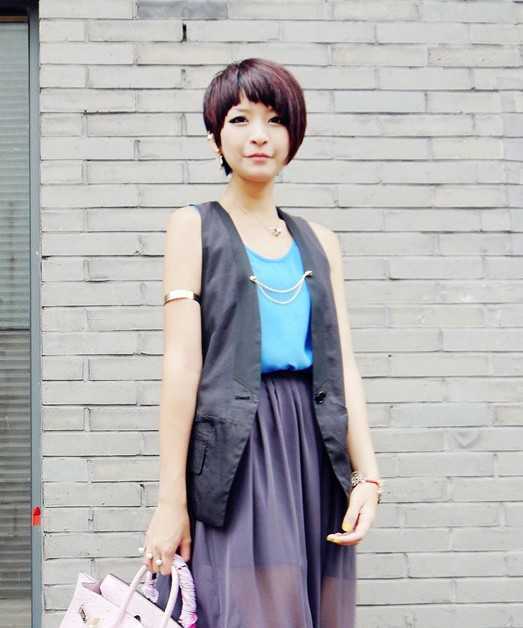 不对称的短发,个性时尚别具魅力,不过这样的短发脸型好的MM演绎出来会比较美,如果你的脸型并不是很好,那就要慎重选择了。