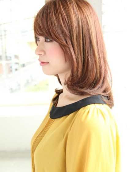 很有甜美范的中短发,斜开的刘海,以及两颊呈内扣感的发尾,整体就是有修脸效果,给人甜美感!扮嫩减龄百分百!