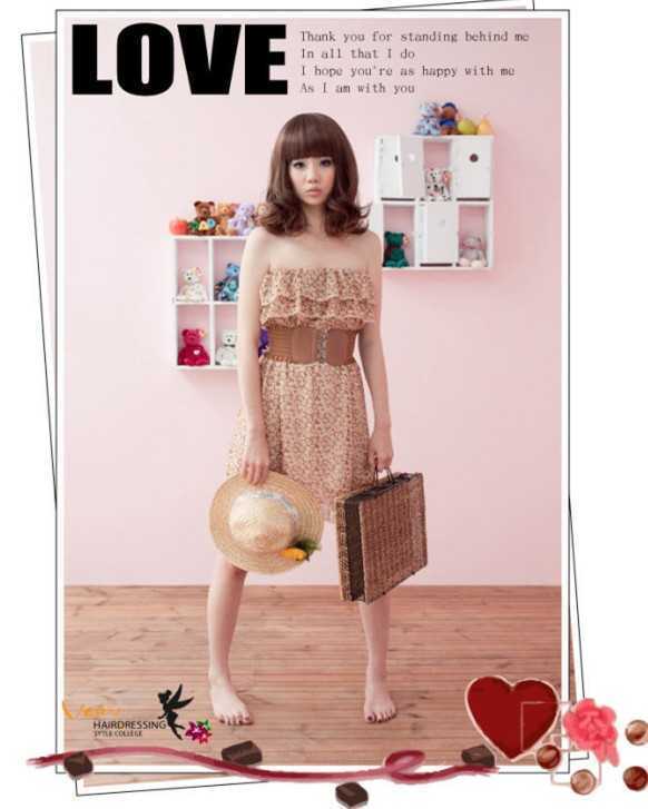 一款仙仙的抹胸碎花裙,十分的清新甜美哦!带修剪一跨齐刘海蛋卷头短发发型,瞬间将你的甜美可爱气质尽显哦!