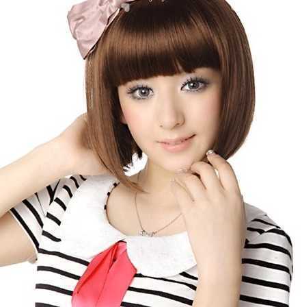 甜美时尚的波波头短发,前面是剪齐刘海,倍添甜美,浅棕发色,增添了时尚感,内扣感的发尾,修脸最棒!减龄又时尚,还很显小清新哟!