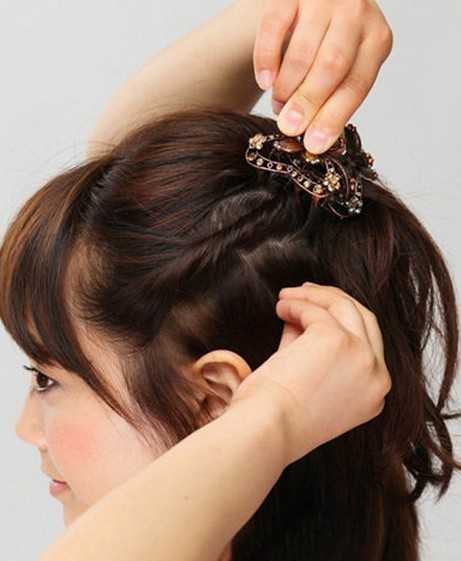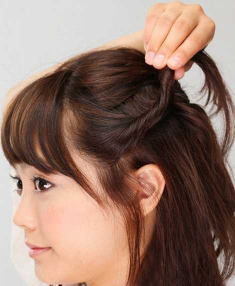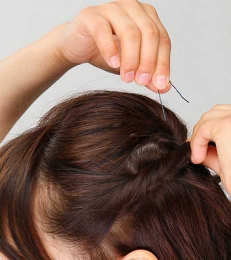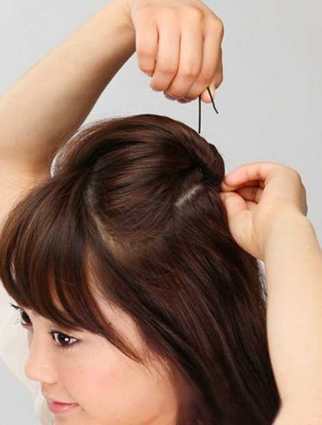 第一步:将头顶的头发束起,想要制造出蓬松感,稍稍向上推下,用发夹固定。