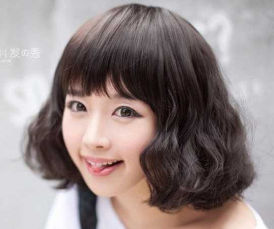 很有爱的一款短发蛋卷头,不规则的齐刘海把女生水灵灵的大眼睛完美展现出来,自然发色和蛋卷发尾的结合,很有韩式风味,加上搞怪俏皮的表情显得十分可爱活力。