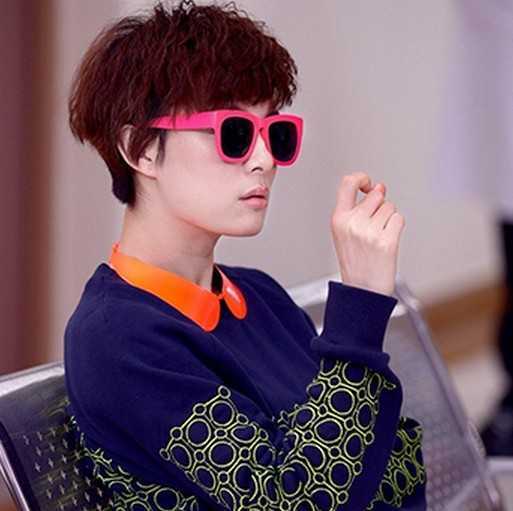 孙俪的这款短发爆炸头发型,可是2013秋季最IN最个性的发型首选,整体亮色的混搭,尽显时尚潮流气息,粉色的墨镜更是魅力动人呢!