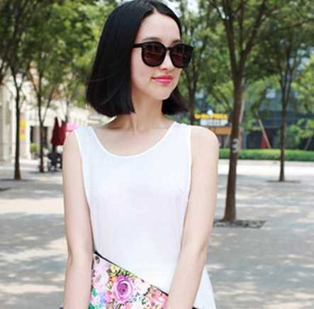发型点评:充满知性气质的波波头中分短发,这款短发发型绝对是职场OL最佳首选,中分的刘海,发尾处有点内翘设计,时尚干练十足。戴上一副墨镜,很酷有木有?