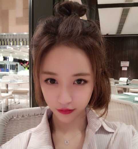 红唇的美妆,少许的性感迷人魅力,搭配一款韩国十分流行的短发发髻扎发,演绎出清纯个性风,十足抢镜!