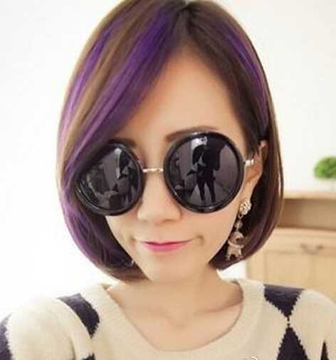 十分时髦的一款女生短发,波波头的设计造型,瘦脸效果也是相当棒的,渐变染发色搭配时尚墨镜,酷酷帅气的哦。