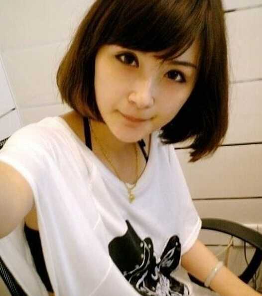 波波头设计的短发造型,搭配一个简单的斜短分刘海头发,有着夏季清爽味道之余,更是凸显清纯可爱感。