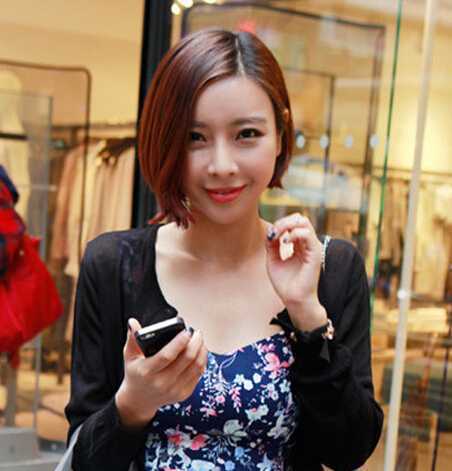 斜刘海的短发,是很多职场女士的最爱,既能凸显干练气质又不失女人味,染上酒红色,时尚又能把脸色显得更红润。