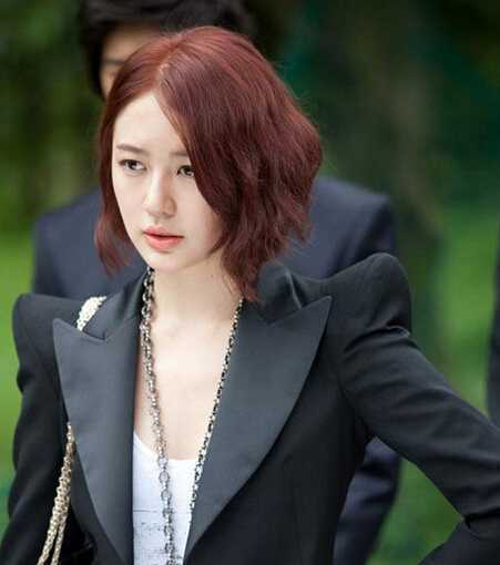 尹恩惠一头性感短发还蛮惊艳的,染上酒红色的头发把皮肤衬托得红润白皙,稍微烫卷的短发没有呆板的感觉,看着反而知性优雅,性感又不失可爱女人味。
