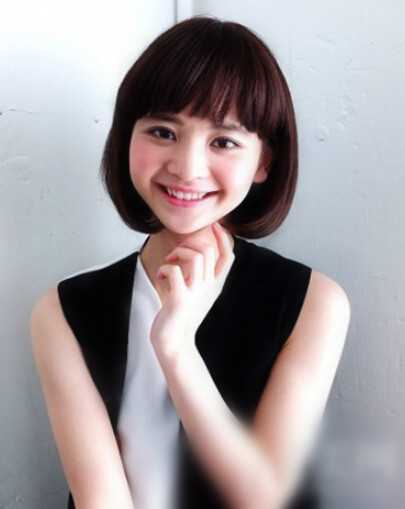 发型点评:一款十分俏皮可爱的波波头短发发型,露眉的齐刘海减龄效果极佳,凸显出女生的清纯可爱,内扣的发尾弧度精致完美,修饰出一张巴掌小脸。