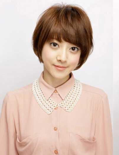 发型点评:一款非常适合学生美眉的韩式波波头,圆润的剪裁加上额前细碎的齐刘海,洋溢出满满的少女感,顺直的发丝显得自然纯美,令人心动。