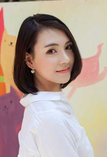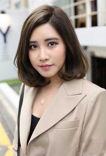 齐肩内扣短发给人一种非常文静乖巧的感觉,三七分的刘海露出额头,十分清爽大方,发量少的那一侧别到耳后,发尾部分再做一些微微的修剪,瘦脸效果更为显著。