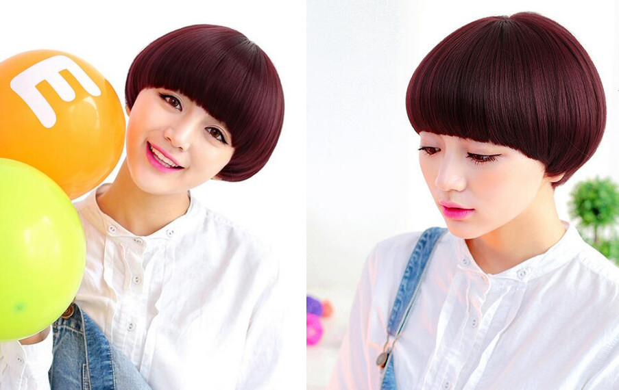 蘑菇头短发发型图片4》》》》》百分百传统的蘑菇头大概就是这样的,整个发型的弧度十分自然流畅,安稳地贴合在你的头上。想让你的蘑菇头变得更时尚,你还可以为它染色,像这样的酒红色个性又低调。