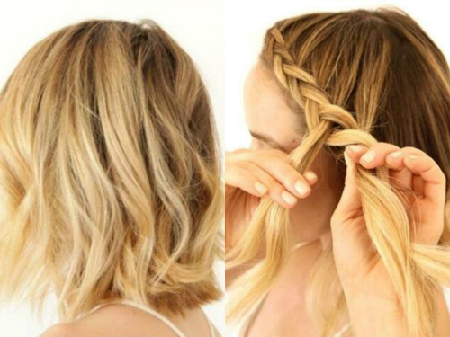 将你的短烫发打理得干爽一些,然后将刘海中间分界,从刘海开始编一条三股辫。