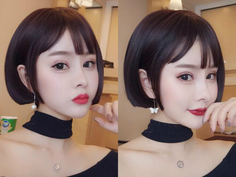 摩登的波波头,非常的帅气,弯弯弧度的头发很有曲线美,一头黑色的直发显精神,齐耳的发尾,露出性感的耳朵的同时也拉长脖子线条,轻盈的空气刘海很好的修饰出白皙的小脸蛋,搭配红唇,很有女神范。