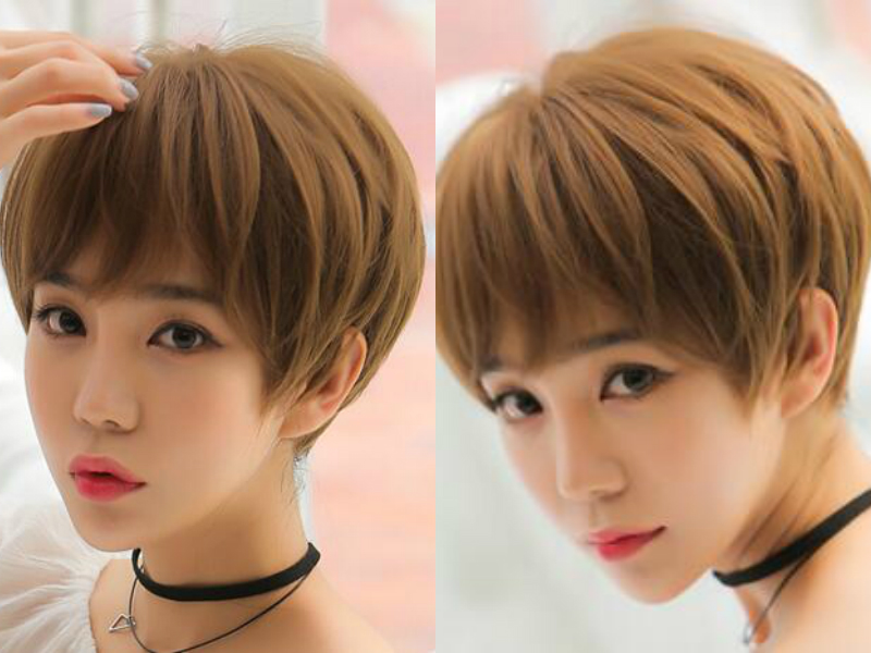 非常帅气的一款齐耳短发,简单大方给人很干净的感觉,亚麻色的头发蓬松不规则却很有层次感,利落的短发充满不羁与随性,稀疏的刘海隐约看到清秀的眉眼,一张小巧的脸,透着迷人的气质。