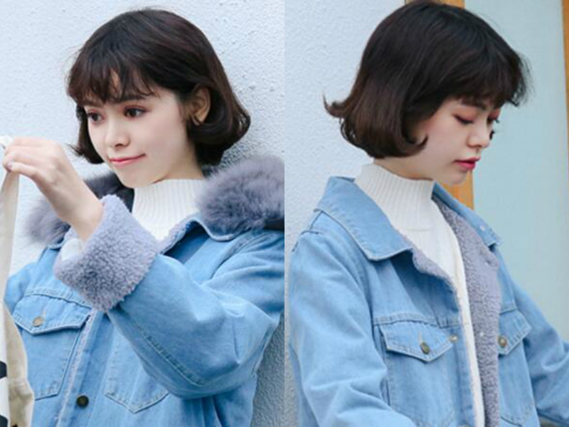 短发只要稍微烫一下就会很好看,像这样简单地在发尾烫出一个弯弯的翘卷,就会变得很俏皮可爱,与空气刘海搭配更是清新自然,真是时尚又好看。