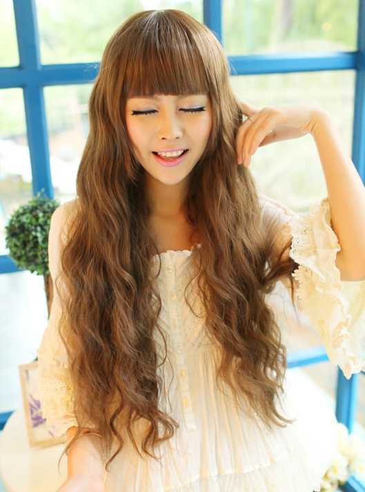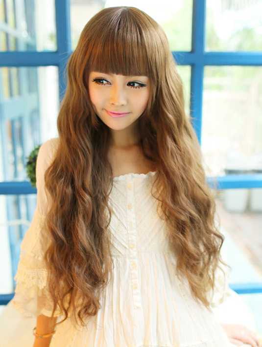 超可爱的蛋卷头,齐齐的刘海显得眼睛大了有没有?显得超可爱,长长的蓬松蛋卷发,黄色的发色,超可爱,芭比娃娃的感觉好浓哦,超甜美可爱。