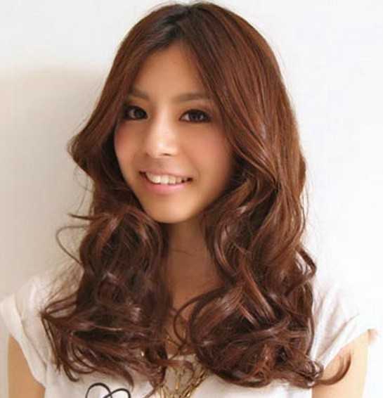 中长发的蛋卷头发型,层次立体的头发很显光泽感,中分大弧线的刘海更是发型中的一个亮点,让女生最精美的脸蛋完美呈现出来,瞬间打造小V脸型,栗子色系染发又是甜美时尚的表现。