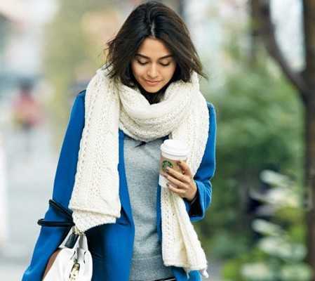 step3:寒冷的冬天出门在外围上一条围巾,视觉上看上去头发有种蓬松感。
