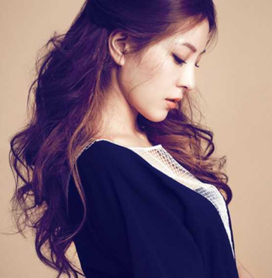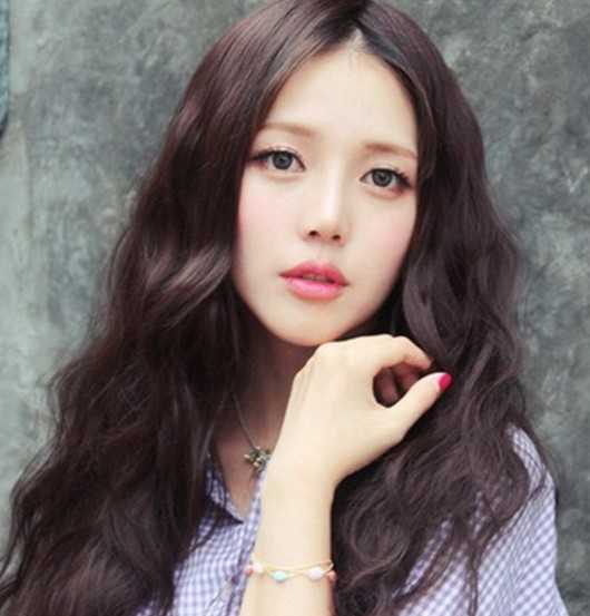 萌妹子最爱的一款大波浪卷发,分别前后披肩的头发,优雅却不失小清新气息,搭配韩系的稀薄刘海设计,淡淡的棕红发色,绝对甜美时尚。