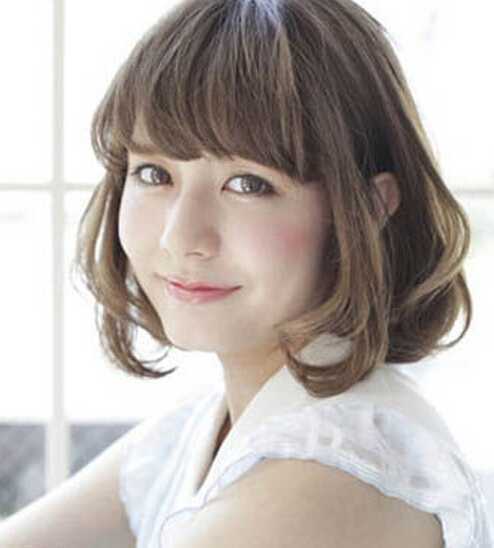 发尾有层次的内扣修剪,增加了这款荷叶头卷发的层次感,而刘海也起到很好修颜的作用,淡淡的亚麻发色,个性甜美都一一尽显。