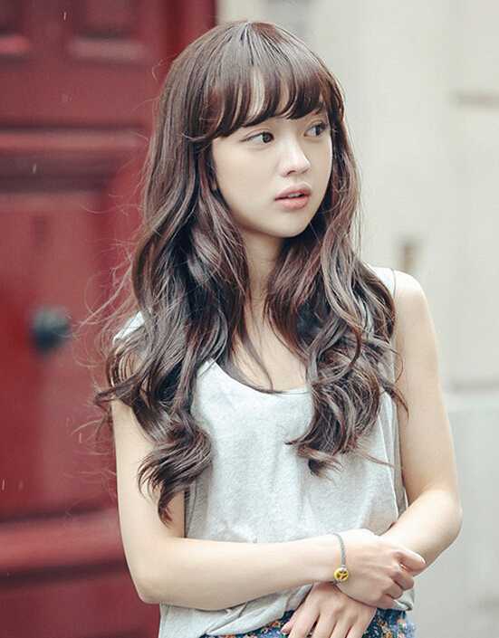 发型点评:这款清新靓丽的萝莉女生长卷发发型,甜美可爱,烫出内扣的气质空气齐刘海起到了修饰了脸型的效果,搭配上柔顺飘逸的长卷发发型映衬下格外清新动人。
