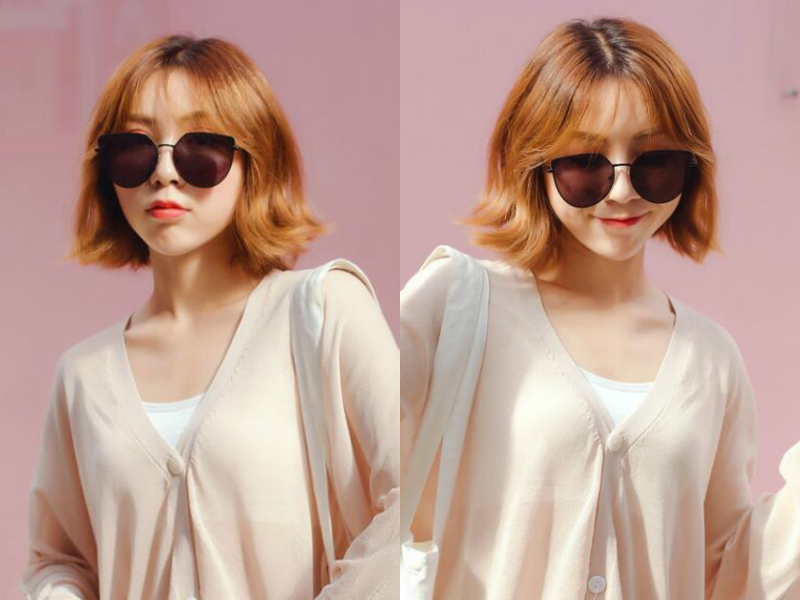 短发俏皮活泼,与蛋花卷搭配更是精致好看。短至脖子处的发尾加入了卷烫设计,发尾向外翘出增添了可爱感,几缕刘海轻垂额头,额头若隐若现之中又将脸型拉长了,戴上一副墨镜神秘之余更显得脸蛋小巧。