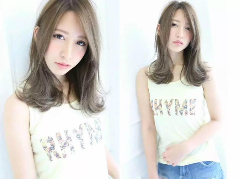 亚麻青色的发色时尚又别致,搭配卷发发型更显迷人。三七分的刘海设计使少部分额头露出来,起到拉长脸型的作用,额头和脸颊的两侧发丝垂落,卷翘的发丝贴在肩头上,突出女生尖细的下巴的同时也使女生的脸型看起来细小很多。
