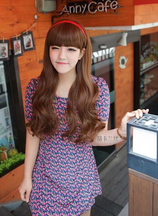 甜美的齐刘海梨花头是很多圆脸女生都选择的发型,长长的刘海把脸蛋遮盖一大半,加上大波浪的长发真心好看!