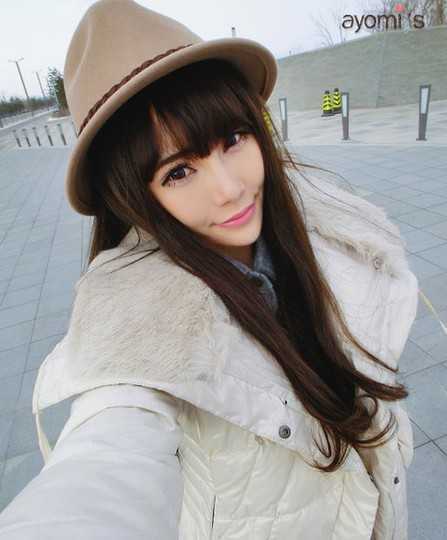 把帽子一戴上,瞧!时尚潮流气息出来了~很适合瓜子脸型的一款长卷发哦!