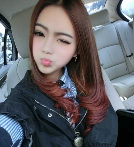 同样是一款非常俏皮可爱的长发发型,发尾梨花烫的效果,尽显乖巧活力,贴服的中分长刘海,打造出一张精细的脸蛋,使胖脸得到很好的修饰,渐变棕红的发色,在2013秋季里更是时尚呀!