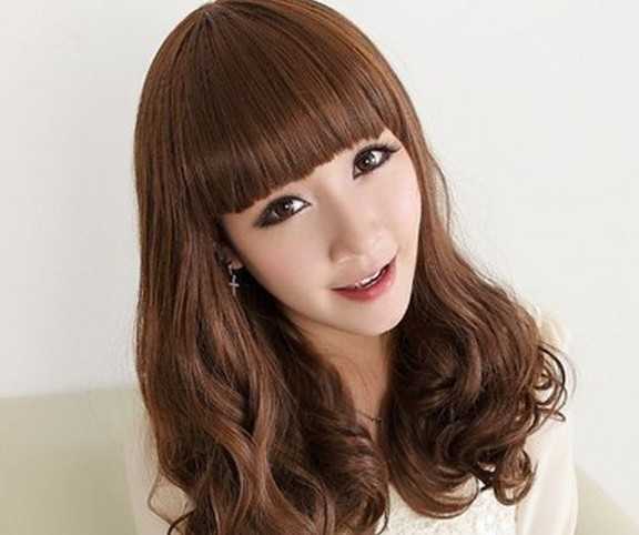 2013秋季迷人的长卷发,尽显着女生最优雅的气质,厚感齐刘海的结合,给人的感觉又是超萌的,贴服的卷发将脸型明显缩小了,瞬间完美修颜,胖脸的MM值得一试的发型哦!