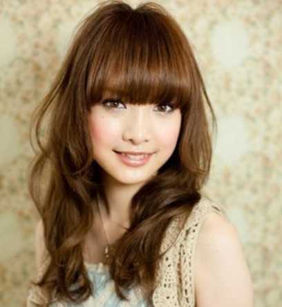 发型点评:对于椭圆脸蛋MM来说,拥有这样脸蛋的妹子也是算漂亮的了,不过就是其脸型相对较长,因此,在选择刘海的时候要刚至眼睛的较好,将头发烫波浪卷,能更好修饰脸型,遮挡较宽的脸蛋。
