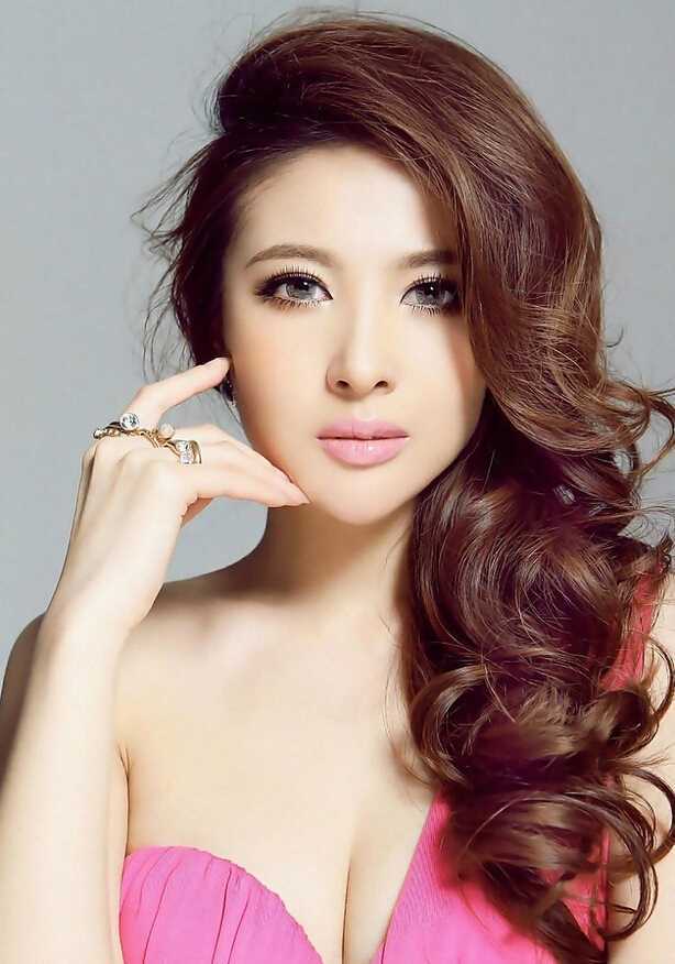 发型点评:温柔的斜侧分,一侧的刘海遮盖了半侧脸,造成了阴影的效果,致使小脸更加迷人可爱了,大波浪卷发使脸部柔和甜美!