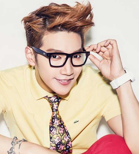 金棕色的飞机头短发发型,两边的鬓角修剪得非常短,长刘海打造出上翘,戴着眼镜和他的迷人瓜子脸,有种校园男生的俏皮感哦!十分受女生的欢迎哦!