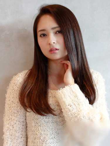 中分的长刘海搭在两颊边,柔化方脸硬朗的线条,看起来显得十分圆滑,层次感十足的内扣发尾包裹住脸型,令瘦脸效果更为显著,搭配时尚的棕色染发,尽显文艺知性范的气质。