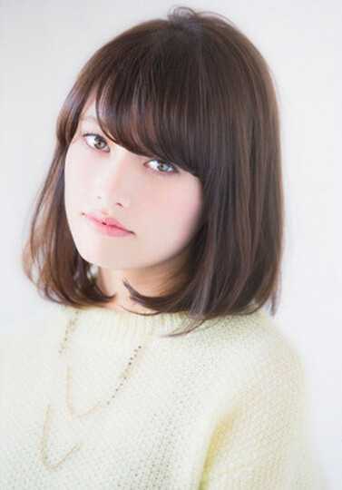 齐肩发型最显气质,齐肩的中长发发尾烫出内扣的效果,轻轻地搭在两颊边,与轻盈灵动的斜刘海完美搭配,将长脸修饰出一张精致的瓜子脸,整体发型尽显淑女气质,十分好看动人。