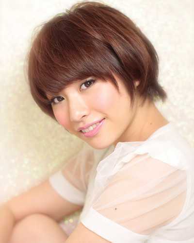 过耳的短发长度干练利落,露出白皙的脖颈,清凉美腻,斜刘海搭配内扣的波波头发型简约大气,完美修颜,搭配棕色的染发颜发,不仅令皮肤显得白皙,气质也得到了大大的提升。