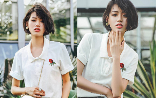 短发一向给人一种简单潮流的感觉。恰到其分的短发长度完美地包裹住方脸,而斜分的刘海设计更是对脸型特进行完美的修饰,蓬松卷翘的发丝帅气十足,给人都是满满的中性干练感觉。